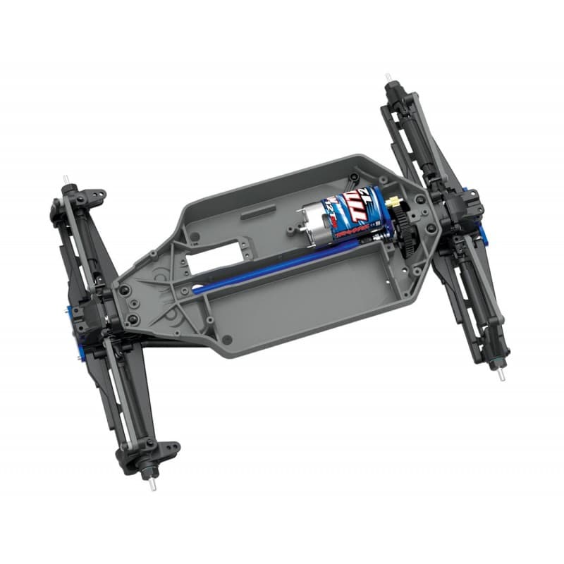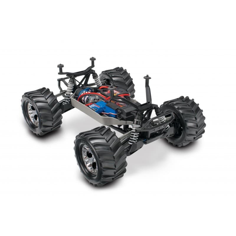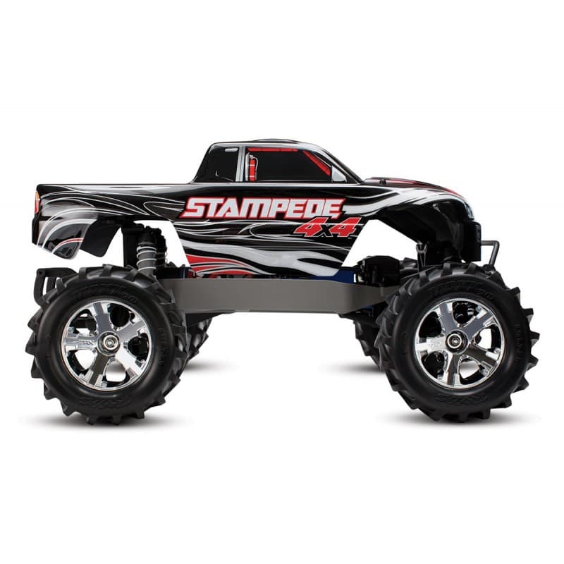 Stampede 4X4 is built on the proven performance of the advanced shaft-driven 4WD system and innovative modular design of the award-winning Slash 4X4. The chassis fully integrates the electronics and battery compartment for an efficient and compact layout, and maintains the high center ground clearance that gives Stampede its monster stance and high-riding look. The extra clearance drastically increases the off-road versatility that allows you to tackle rougher terrain and bigger obstacles. The Stampede 4X4 feels planted and secure at speed, even on pavement and in other high-grip conditions. Stampede 4X4 is 100% monster truck, but it handles like a racing machine!