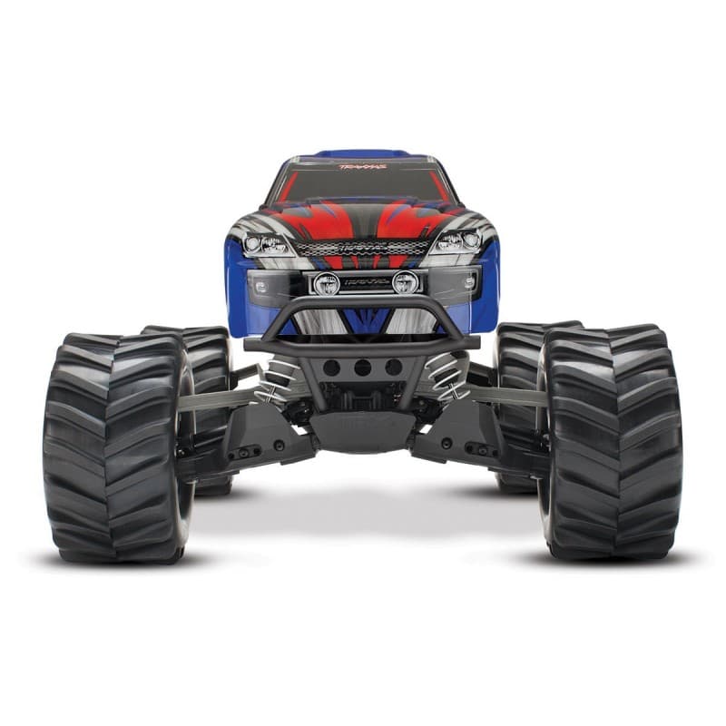 Whether you're going through muddy water crossings or just having fun crushing your buddies' cars, the Stampede 4X4 just doesn't know when to quit. The Stampede 4X4 is overbuilt and Traxxas Tough to withstand all the 4-wheel drive monster mayhem you can dish out. Its tall, drive-over-anything ground clearance and ultra-tough, long-arm suspension make Stampede 4X4 feel nearly indestructible. Chrome All-Star™ 2.8" wheels give Stampede 4X4 aggressive style, and soft Chevron Maxx™ tires deliver true multi-terrain capability. The XL-5 ESC and Titan 550 motor dish out plenty of driving excitement. It's all waterproof, so the fun keeps going through all kinds of wet conditions!  No other truck offers Stampede 4X4's unique style, capability, and reputation for durability. Stampede 4X4 is perfect for almost any age driver or skill level and comes fully assembled, painted, and Ready-to-Drive with included 7-cell 8.4V NiMH battery pack and charger. Speed, style, versatility, and fun…Stampede 4X4 has it all!