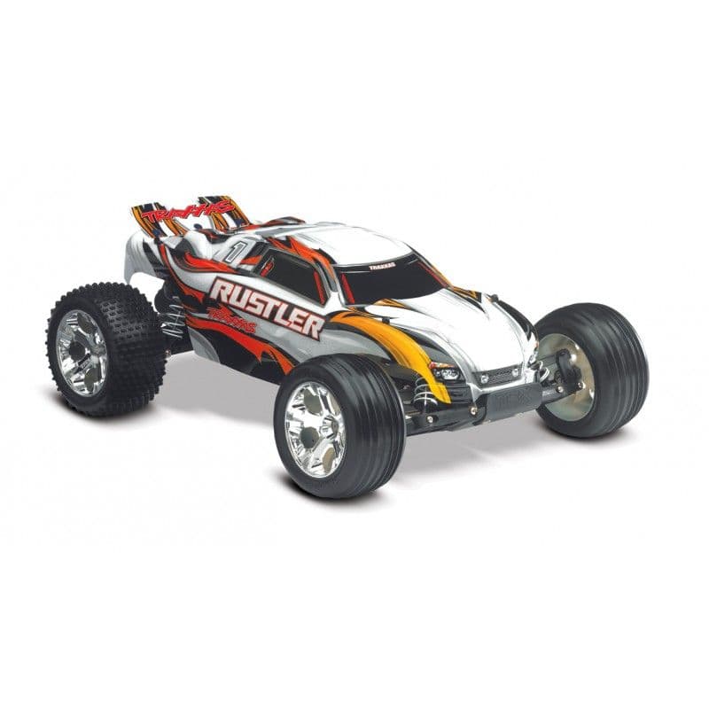 The Traxxas Rustler is a proven favorite with a formula for rugged fun that nothing else can touch. The Rustler blows the doors off the competition with more power, smoother control, better grip, and performance that makes it one of the fastest Ready-To-Race® electric trucks available. The Rustler rips off-road with its powerful Titan® 12-Turn modified 550 motor, XL-5 Electronic Speed Control, and Revo®-spec Torque-Control™ slipper clutch. It's made for power-sliding, full-throttle, off-road action and aggressive driving fun—and not just in the dirt! With Traxxas' exclusive waterproof electronics, Rustler can blast through puddles, mow through mud and shred snow. Your R/C adventures are limited only by your imagination. And with a top speed of 35+mph*, Rustler simply leaves everything else back on the work bench.