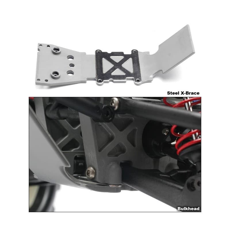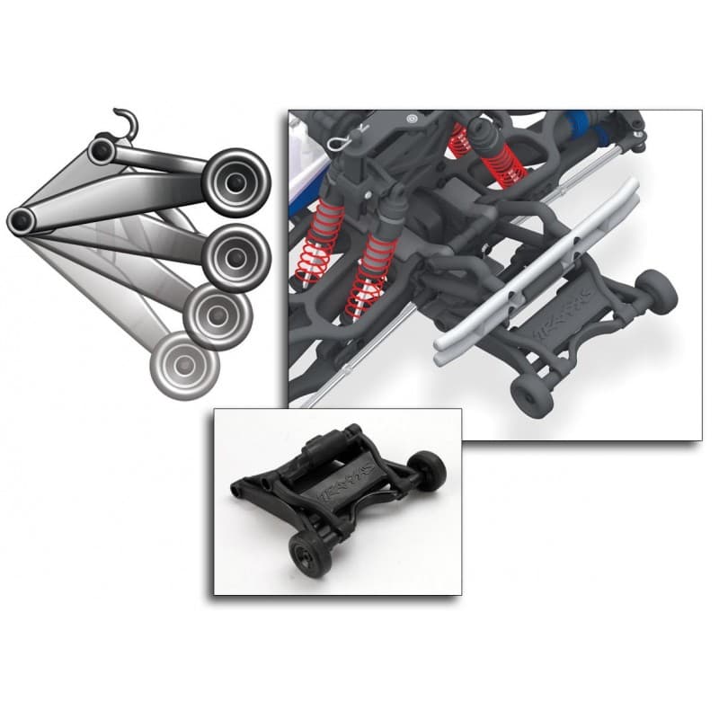 The T-Maxx 3.3 is the biggest Maxx ever. Giant Maxx tires deliver massive grip off-road and at 6.3" tall, they add increased ground clearance to gobble up deep ruts and overcome huge boulders (be sure to check out the videos!). In the city, urban obstacles such as curbs and stairs beckon for an all-out Maxx assault. Maxx tires come pre-glued to 3.8" Mirror-Chrome Hurricane wheels. Traxxas engineers equipped the T-Maxx 3.3 with an extended wheelbase (30mm longer) for maximum stability. T-Maxx is able to put more power the ground for even more acceleration and amazing directional control. There's no skimping when it comes to the chassis. It's formed from 4mm thick 6061-T6 aluminum and then anodized in brilliant blue. Meaty chassis braces and a rugged skid plate add rock-solid rigidity.