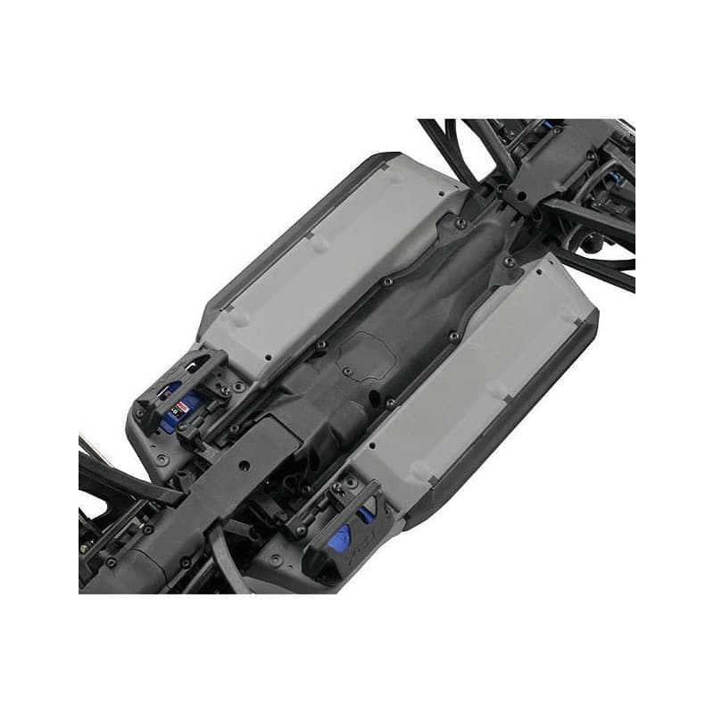 Traxxas Stability Management™ (TSM) allows you to experience all the extreme power, speed, and acceleration that was engineered into your E-Revo making it much easier to control on common slippery surfaces such as dusty asphalt, smooth concrete, and even ice and snow. Punch it off the line and TSM goes to work sensing the vehicle’s direction and making steering corrections to provide straight-ahead full-throttle acceleration without fishtailing, spinouts, and loss of control. TSM also works during cornering, first making intuitive corrections to maintain your line, and then allowing you to hammer the throttle earlier in the turn for much faster exit speeds. Braking is dramatically improved as TSM works to keep you arrow straight until you come to a complete stop.