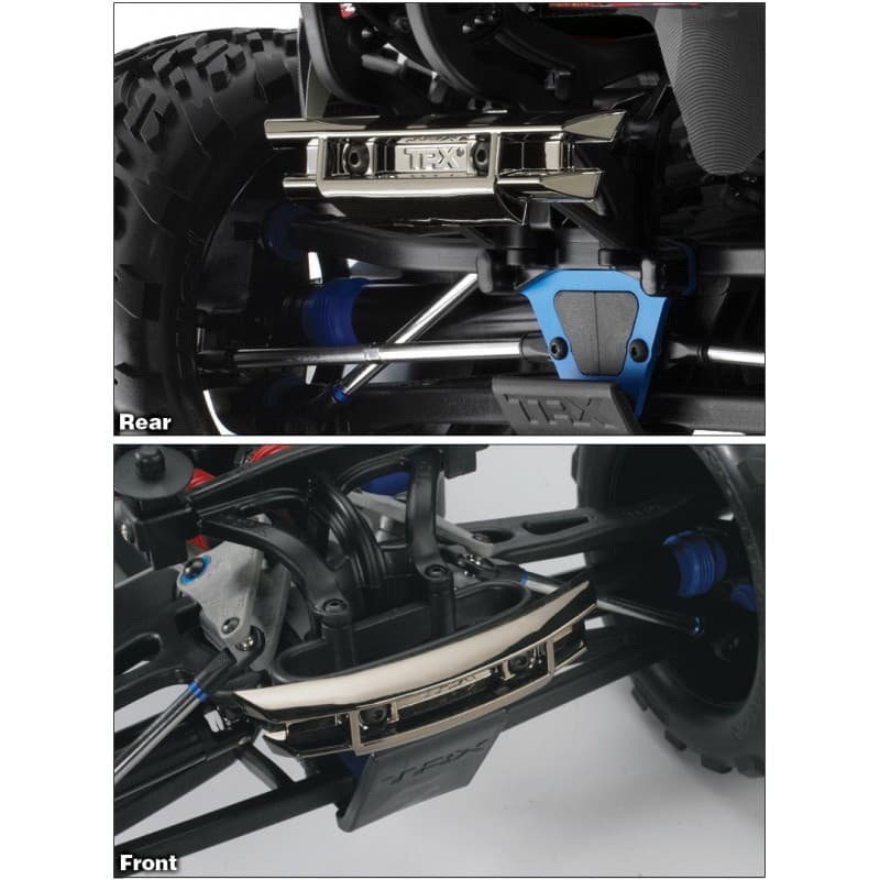 Traxxas Stability Management™ (TSM) allows you to experience all the extreme power, speed, and acceleration that was engineered into your E-Revo making it much easier to control on common slippery surfaces such as dusty asphalt, smooth concrete, and even ice and snow. Punch it off the line and TSM goes to work sensing the vehicle’s direction and making steering corrections to provide straight-ahead full-throttle acceleration without fishtailing, spinouts, and loss of control. TSM also works during cornering, first making intuitive corrections to maintain your line, and then allowing you to hammer the throttle earlier in the turn for much faster exit speeds. Braking is dramatically improved as TSM works to keep you arrow straight until you come to a complete stop.