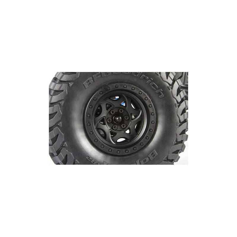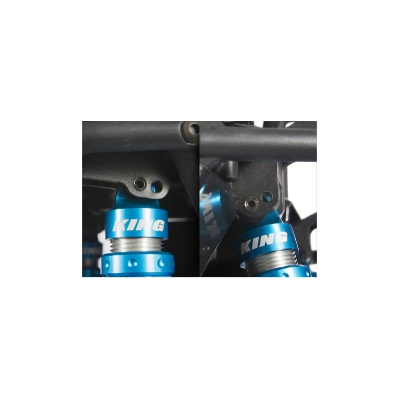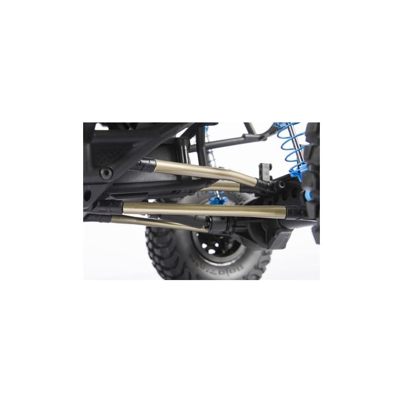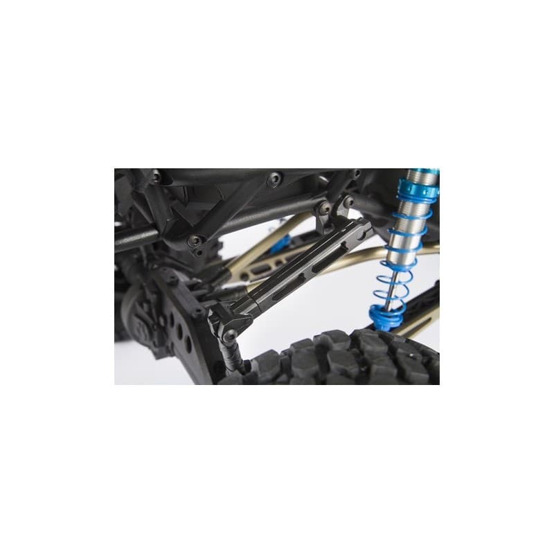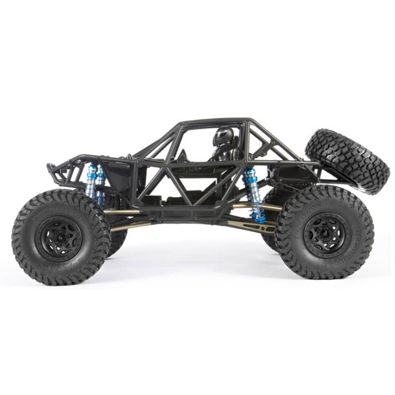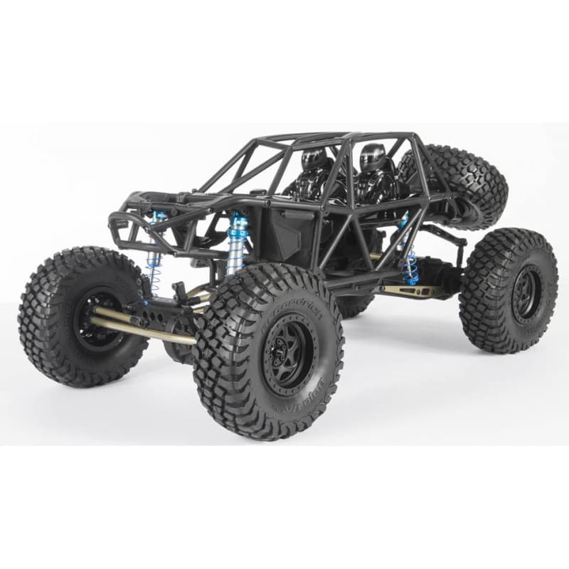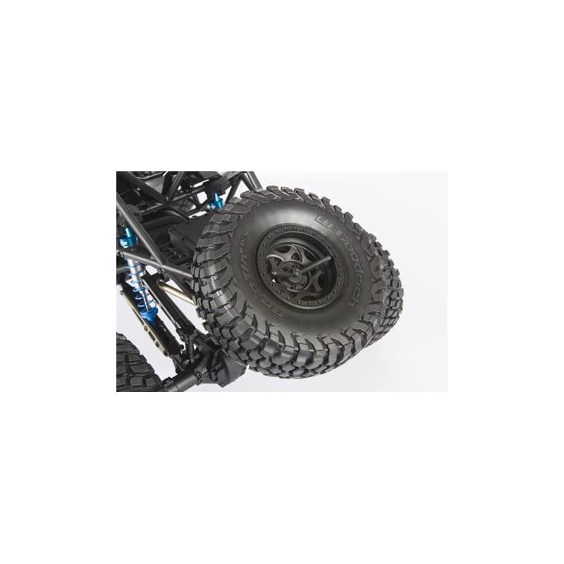 The RR10 Bomber build-it-yourself kit is loaded with features allowing you to customize it and add your own electronics for the ultimate rock racer! Building on the current, successful ready-to-run model, this kit version includes a wide variety of desirable option parts that deliver next level performance and durability. Hard anodized aluminum suspension links, hard anodized aluminum steering links, long travel rear sway bar, hardened steel universal axles allowing up to 50 degrees of steering, aluminum lower link plates, and King adjustable machined aluminum shocks, all riding on sticky BFGoodrich® Baja T/A® KR2 tires wrapped around 2.2 Walker Evans Racing beadlock wheels. We've also included heavy duty bevel gears in the front and rear axles for improved gear mesh, and increased strength.