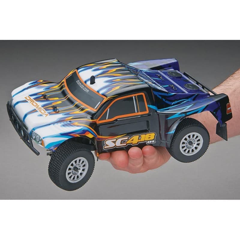 This is the Brushless Electric Powered, Radio Controlled, 1/18 scale Short Course Truck from Dromida. When it comes to price vs. performance, nothing matches Dromida cars. Oil filled shocks with preload adjustment, two differentials, adjustable, upgradeable and super durable, it easily outperforms many competitors and won't break your budget.