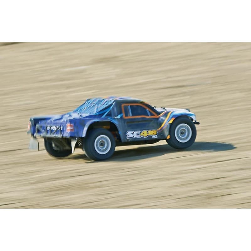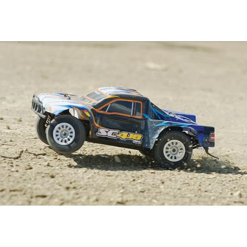 Ultimate weapon, meet the short course truck that's born to bash! The SC4.18BL is built tough for fender-to-fender fun, and comes fully assembled and equipped. A brushless motor and ESC deliver plenty of power, and dropping in a LiPo battery (optional) boosts performance and doubles the speed. It's easy enough for anyone to enjoy, and a natural for outdoor action — while also being just the right size for driving in a basement or on a garage floor!