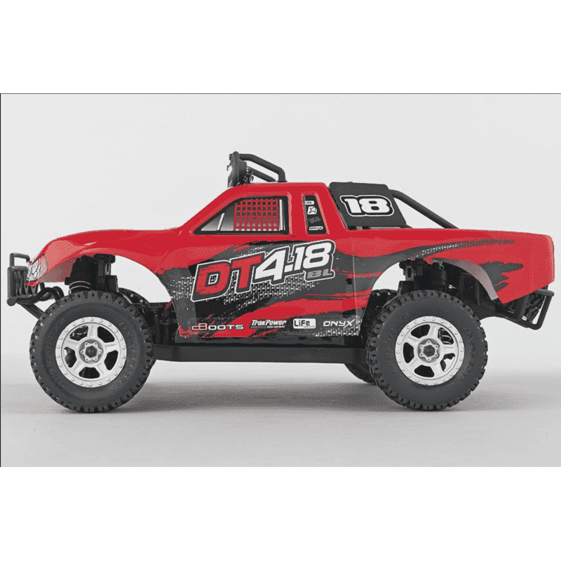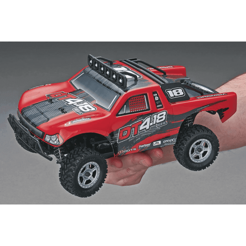 This awesome off-roader boasts rugged realism, right down to the LED lights mounted on top. Factory assembled and complete, it handles the toughest terrain 4WD ease, brushless power and waterproof electronics — and you can take the DT4.18BL's performance to another level when you install an optional LiPo battery pack and double the speed!