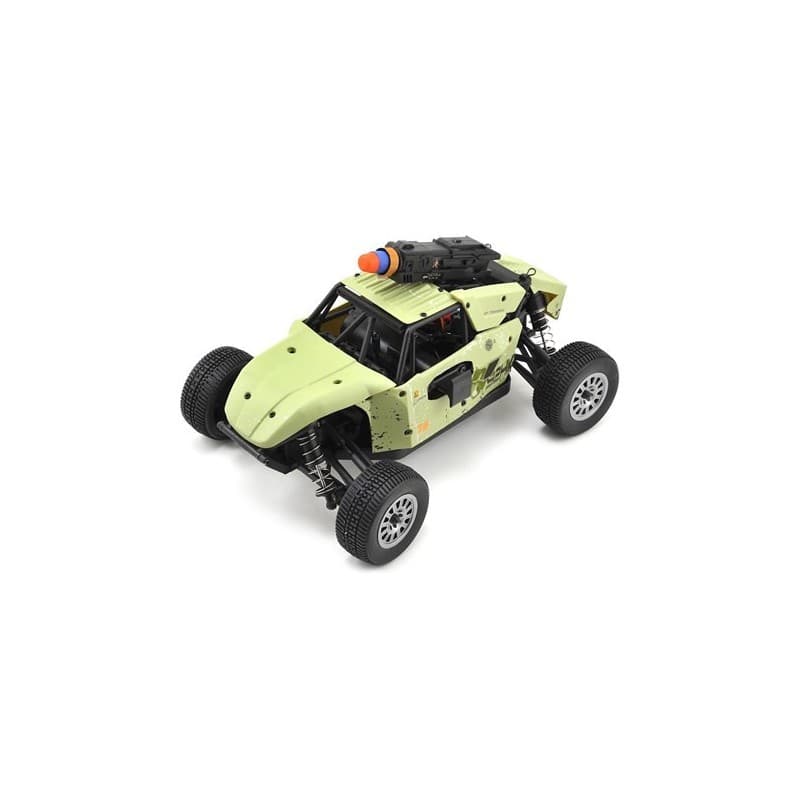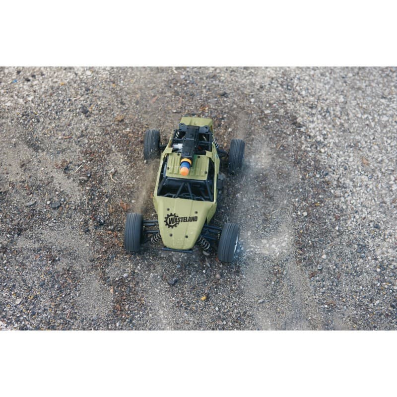 Tough as rock this Wasteland Buggy survived multiple battles and now available for one more try at your backyard or any off road. It arrives assembled and mission-ready right out of the box. It's fully equipped with everything needed, from "AA" batteries for the radio to three fast-flying foam darts and three channel 2,4 Radio control system..