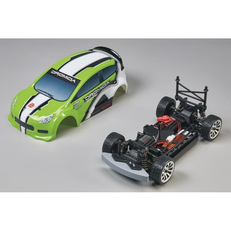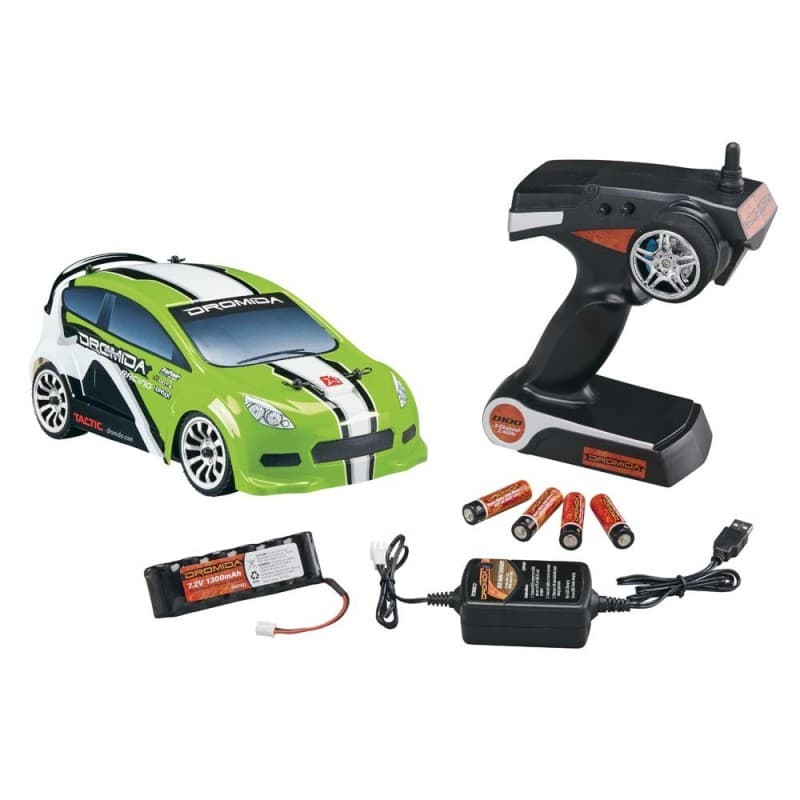4WD, high-grip tires and a low CG suspension make Rally car fun to drive, and its toughness is enhanced by a foam front bumper and proven chassis. Plus, the Dromida Rally Car also comes with quality components such as a 2.4GHz radio, NiMH battery and charger, making it the perfect package for all-out fun.