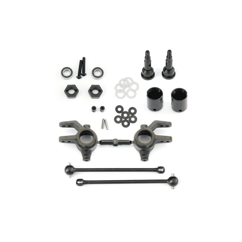 The Tekno RC M6 Driveshafts and Steering Blocks will give your Slash 4×4 or Stampede 4x4 the ultimate in performance and durability. Oversized ball bearings for higher loads and hardened steel alloys makes this kit one of the best alternatives to the stock Traxxas plastic driveshafts and a must when you upgrade your truck to Brushless or Lipo power and speeds.