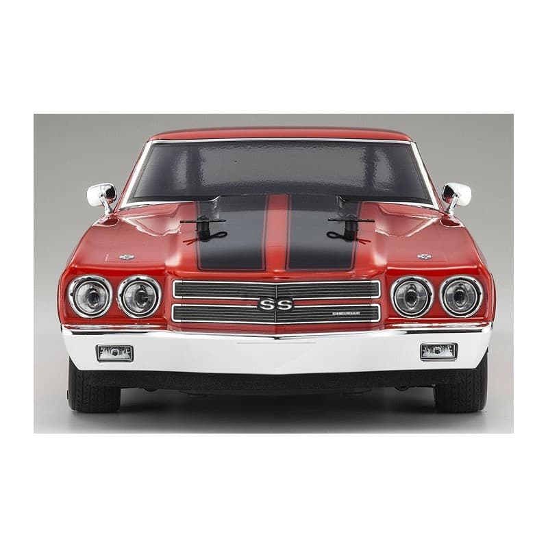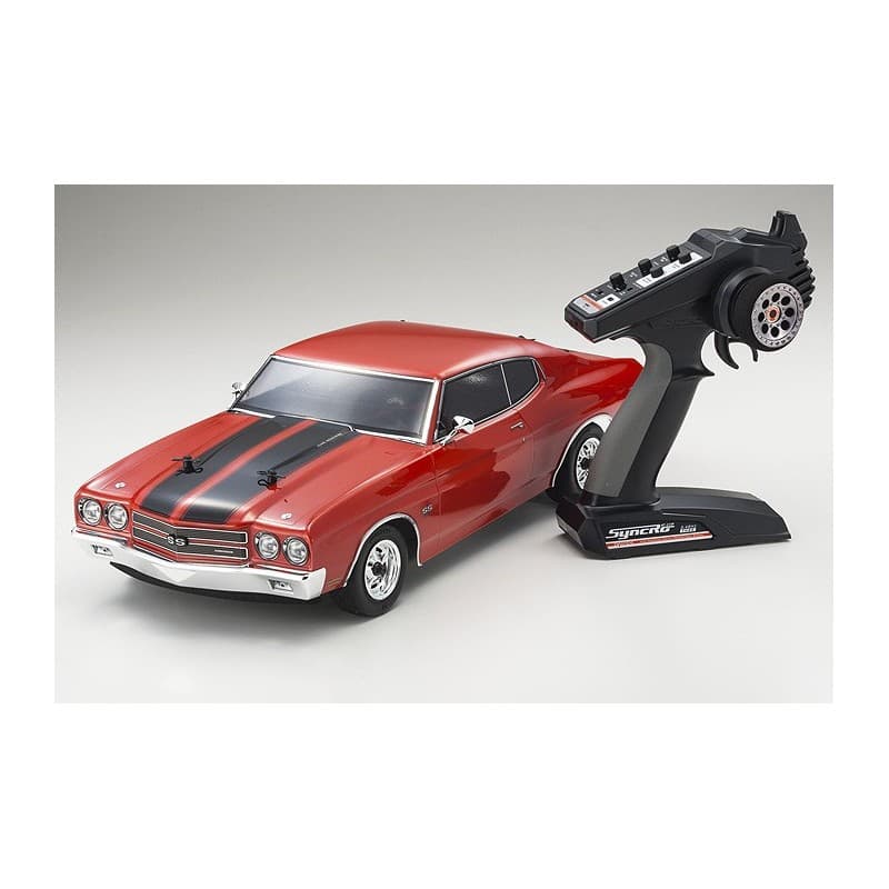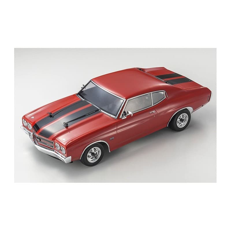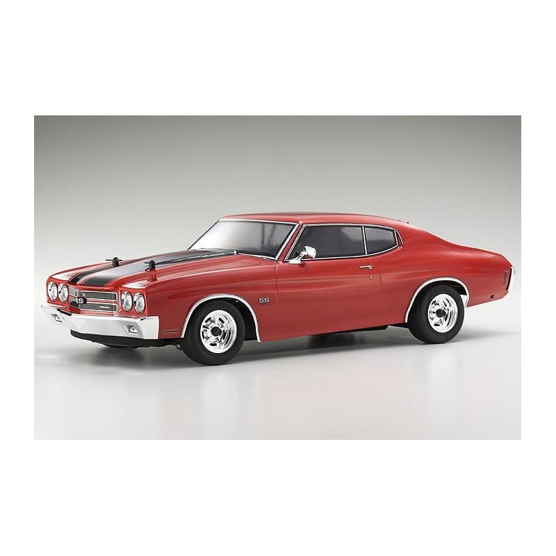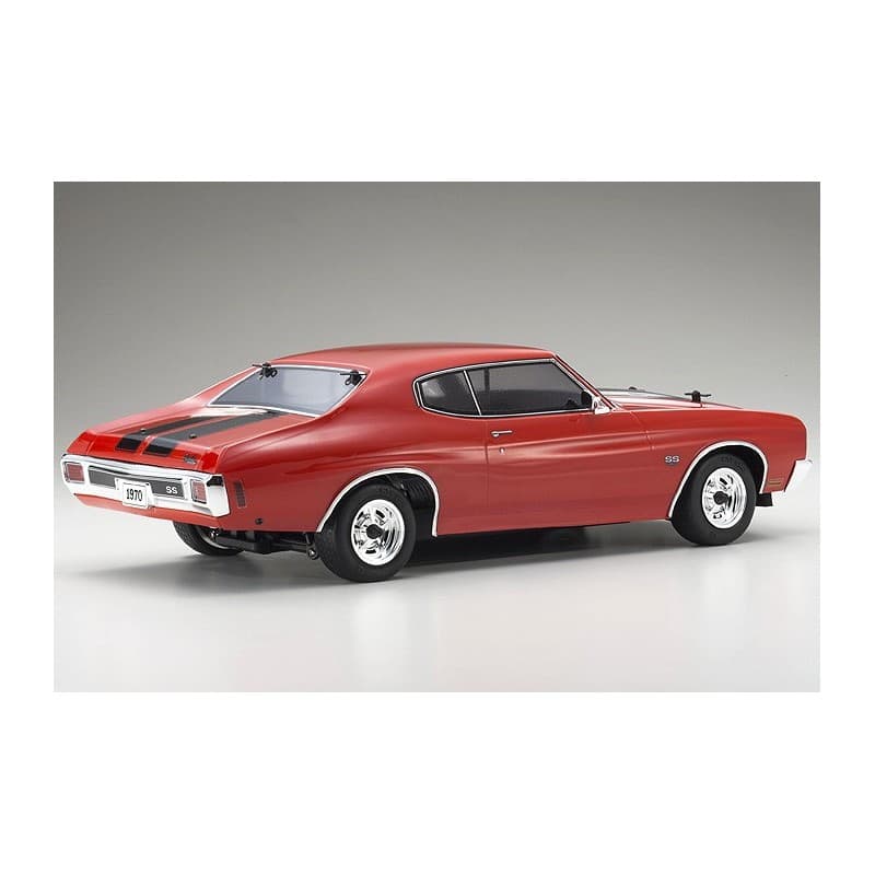 One of the iconic muscle cars in American history is now part of the popular Fazer VEi line of brushless-powered, hobby-grade RC cars from Kyosho – the 1970 Chevy Chevelle SS! The Chevelle has always been part of the muscle car elite, but the 1970 SS model with the LS6, pumping out 450 horsepower right out of the showroom, was the most popular Chevelle of all. Available in two of the most popular colors for the Chevelle, Cranberry Red and Phantom Blue, this machine has many of the features of the full size car, and better in some cases! It comes completely factory assembled, and it’s ready to roll as soon as four AA alkaline batteries are installed in the transmitter. This car features scale speed an acceleration that exceeds that of the real car, but one thing that is very similar to that of the real car, are the stunning lines of the body. The super scale body that’s included with the Chevelle is factory-painted, and clear body kits ready to be painted any color, will also be available.