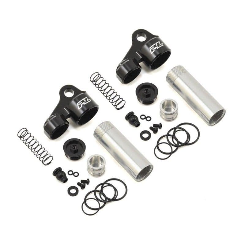 The Pro-Line X-Maxx Ultra Reservoir Shock Cap fits directly onto the stock X-MAXX shocks and transform them into fully functional Reservoir Shocks! The additional Reservoir provides more oil volume to your X-MAXX shocks which results in cooler shock temps and improved shock consistency. The Reservoir Piston compensates for the volume of the Shock Shaft delivering Plush Performance over small bumps and large jumps just like full-scale shocks! The included Shock Cap, Reservoir, Piston and Bottom Cap have all been expertly CNC machined out of high grade Aluminum to exacting specifications to meet the demands of the enormous X-MAXX. The included O-Rings provide the sealing you need and Delrin upper Pivot Balls are included for optimum performance.