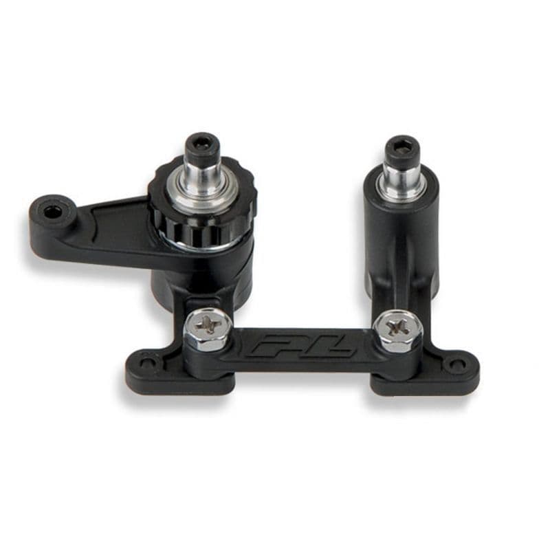 This is the Pro-Line Performance Steering Kit, and is intended for use with the 2WD Slash and Electric Rustler. Do you want to take your Slash to the next performance level? Whether you are racing or bashing, the increased steering response and precision provided by Pro-Line’s Performance Steering Kit will lead to faster lap times and more fun! The kit includes ball bearings for silky smooth steering action and an adjustable servo-saver that allows you to control the desired amount of steering response, while still protecting your servo. As an added bonus, Pro-Line’s development team eliminated possibility of the steering popping out by bolting the steering column through the chassis. Pro-Line’s steering kit is a must for every 2WD Slash and Electric Rustler, especially with Brushless Motor or Lipo batteries!
