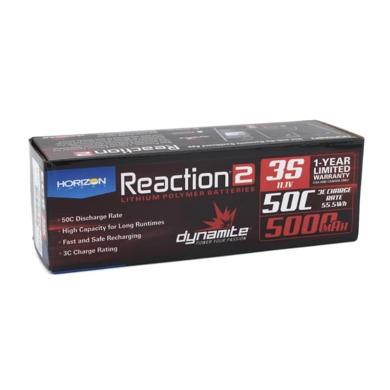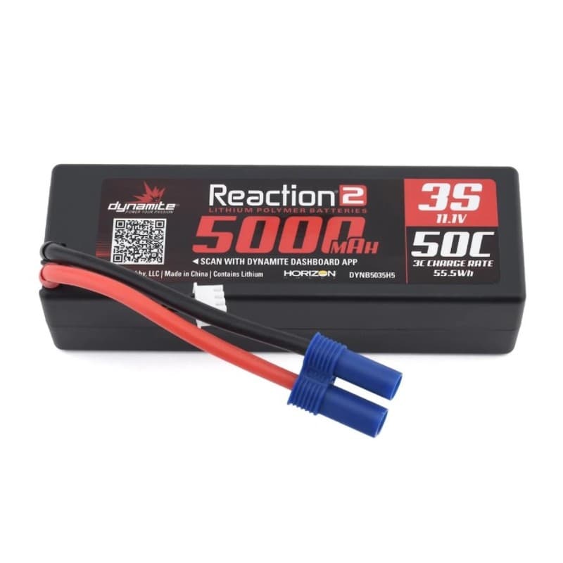 Dynamite's Reaction 2.0 3S 50C 5000mAh Hardcase LiPo Battery comes with all the power and performance expected from the original Reaction line, but now includes a QR code directly on the battery label. Scan the QR with the "Dynamite Dashboard Smart Phone App" for even quicker and easier setup. In addition, all Reaction 2.0 hardcase batteries now come in a sleek black color to better match different setups.