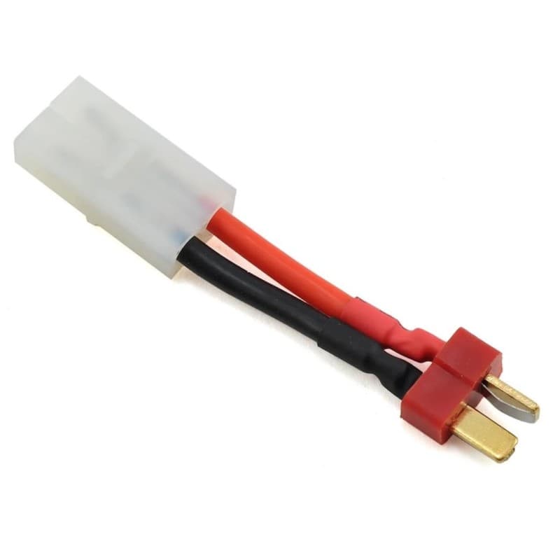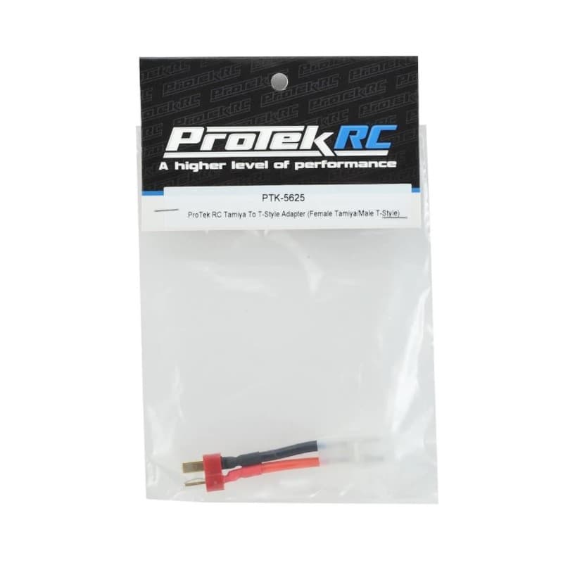The ProTek R/C Tamiya to T-Style Adapter is overall 3" in length, and adapts from a T-Style battery to a Tamiya connector which would connect to an ESC, or charging cable. Assembled with 14AWG wire.