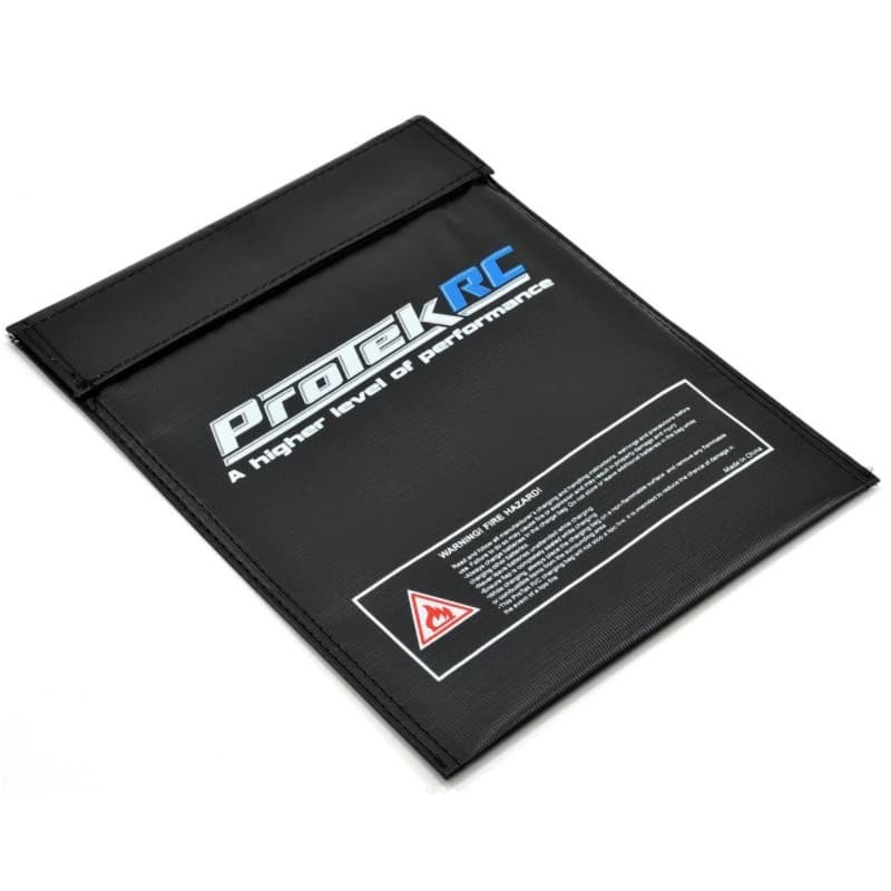 The ProTek LiPo Safe Charging Bag is rated up to 30 watt-hours and is made of high tech space-age materials that will help to contain a lithium polymer battery fire. Place your lithium polymer battery inside the LiPo Safe Charging Bag and extend the charging wires through the top flap. Charge your LiPo batteries in the LiPo Safe Charging Bag for peace of mind and a higher level of safety. In the event of a lithium polymer battery mishap, the LiPo Safe Charging Bag’s fire-resistant material reduces the severity of the fire inside and vents the smoke outside the LiPo Safe Bag. The Charging Bag is sealed with a thick, industrial strength Velcro flap and can also be used for safe transportation and storage of your Lithium Polymer batteries.