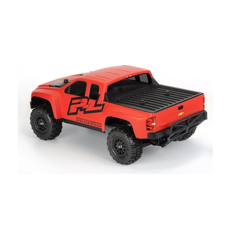 This is the Proline Chevy Silverado HD Clear Body, and is intended for use with the Traxxas Slash, Slash 4x4 1/10 and SC10 short course trucks. Pro-Line now gives you the option to convert your Slash Short Course Truck into a True-Scale Lifted Truck. This scale truck body is perfect for making your friends jealous and giving your Truck a completely different look! Don’t show up to the local bash spot or track with the same body as everyone else.