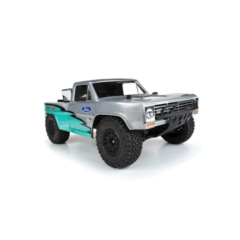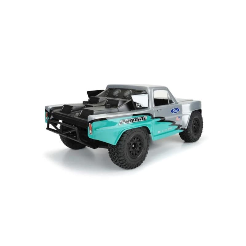 The Pro-Line 1967 Ford F-100 Race Truck Pre-Cut Body allows you to convert your Short Course truck into a fully licensed 1967 Ford F-100 Race Truck! This clear body is pre-cut for easy installation and can be fully customized with whatever paint job you desire. The 1967 Ford body features the iconic flat front F-100 grill and wide fender flares to represent the aggressive fiberglass bulges found on full-size race trucks.