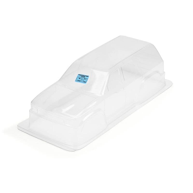This is a 1991 Toyota 4Runner Clear Body for Crawlers. Pro-Line is ready to unleash another fully licensed body for Toyota fans: the 1991 Toyota 4Runner! All of the scale detail from the full-size 2nd Generation 4Runner SUV body style has been scaled down to fit on your 12.3" wheelbase Crawler. The 4Runner is an iconic vehicle that serves as the base of many full-size off-road rigs and now you can have your own for your Scale Crawler! See your scale project come to life, get yours today!