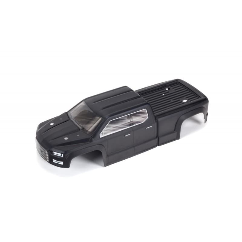 Matte black ARRMA trim scheme for realistic stealthy looks - Strong and durable polycarbonate for long-lasting performance during extreme bashing action - Pre-trimmed for fast and hassle-free fit - Pre-painted and decaled for ARRMA bashing looks and fast replacement of your kit bodyshell - Pre-drilled body mounting holes for easy fit - Aggressive looks and realistic detailing for awesome monster truck styling