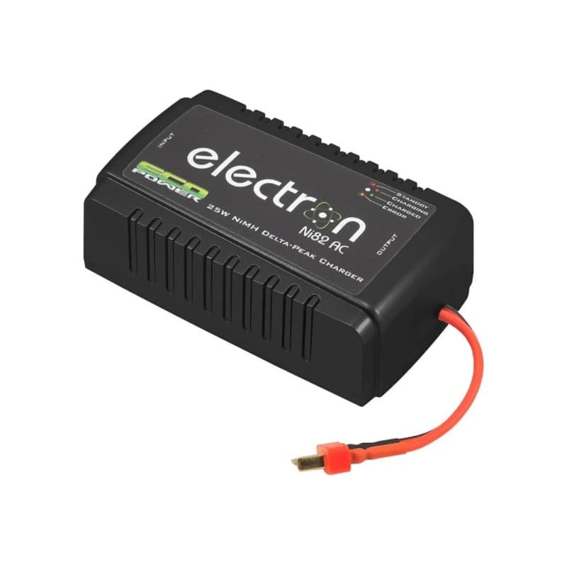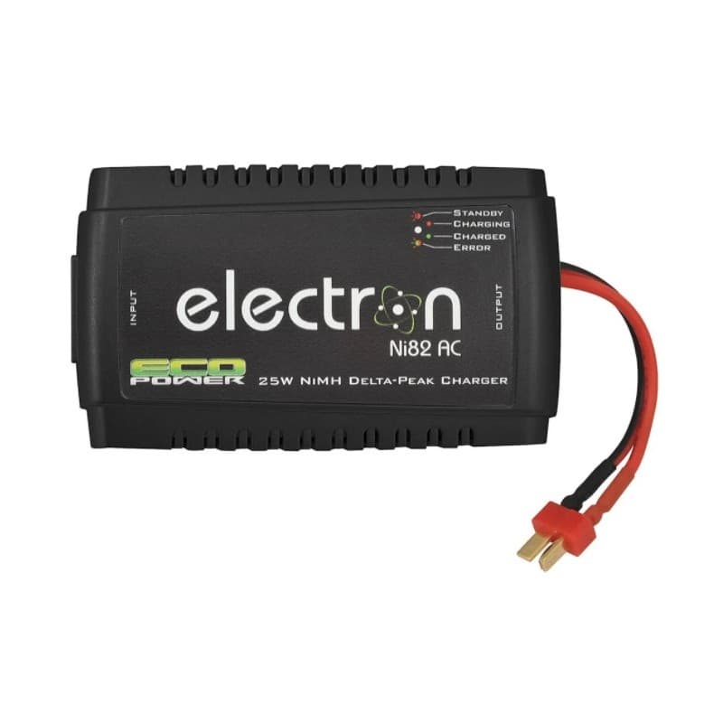 The EcoPower "Electron Ni82 AC" is a single port NiMH specific charger that features a simple to use plug-and-charge operation. With that, simply connect your battery to the T-Style charge lead and the Electron Ni82 AC will detect the voltage and automatically start the charge process.