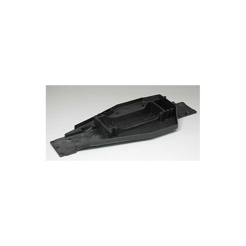 Thids is the replacement lower chassis (or "tub" chassis) for the Traxxas Rustler and Bandit. Made of black reinforced nylon and has a molded-in channel down the center of the chassis for added strength and less flex.