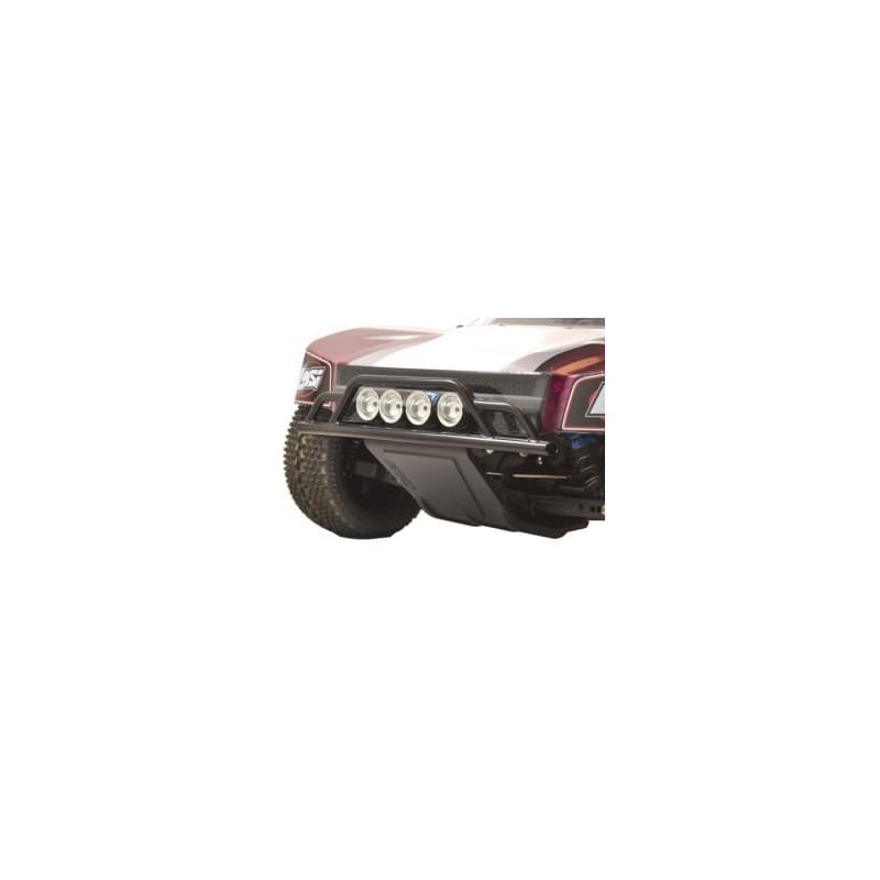 The design of the RPM Front Skid Plate removes the stock bumper support ring from the truck, preventing frontal impacts from transferring impact energy into the front shock tower and top end of the gearbox. This allows much more room for the bumper to absorb impact energy when that inevitable head-on collision occurs. By absorbing the impact, less energy is transferred into the chassis, protecting those more fragile internal components from damage.