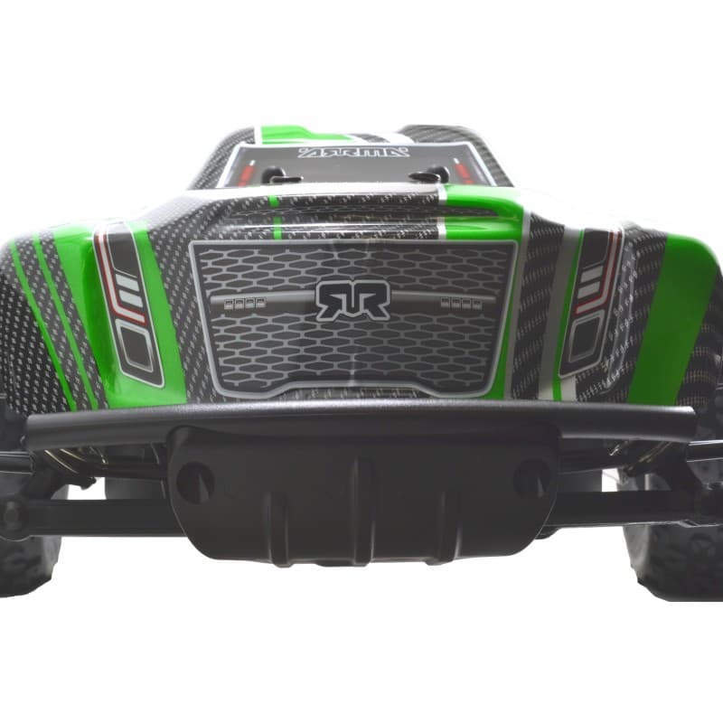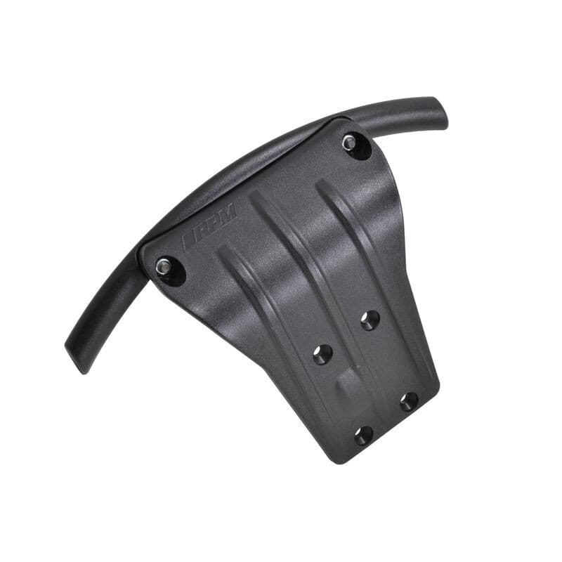 The RPM Front Bumper and Skid Plate is structurally engineered to add much needed impact-absorption to the front of the Kraton / DEX8T, dramatically reducing the amount of impact force from a crash that gets transferred into the chassis. Our two-piece design incorporates a 4mm thick skid plate with 1.5mm skid ribs to the front of the truck, extending more than 1-1/2” (38mm) in front of the chassis and protects the front of that expensive aluminum chassis from skid and impact damage. We then bolt a huge, 3/8” x 1/2″ x 6-3/4” (9.5 x 12.7 x 171.5mm) curved oval bumper on top to help protect the body as well.