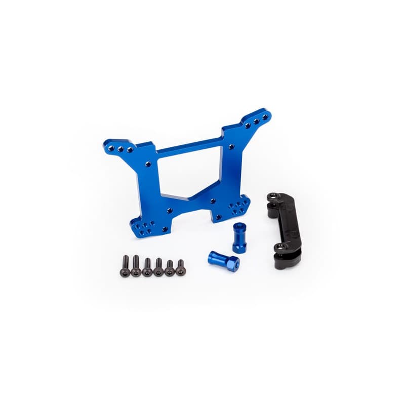 Shock tower, rear, 7075-T6 aluminum (blue-anodized) (1)/ body mount bracket (1)