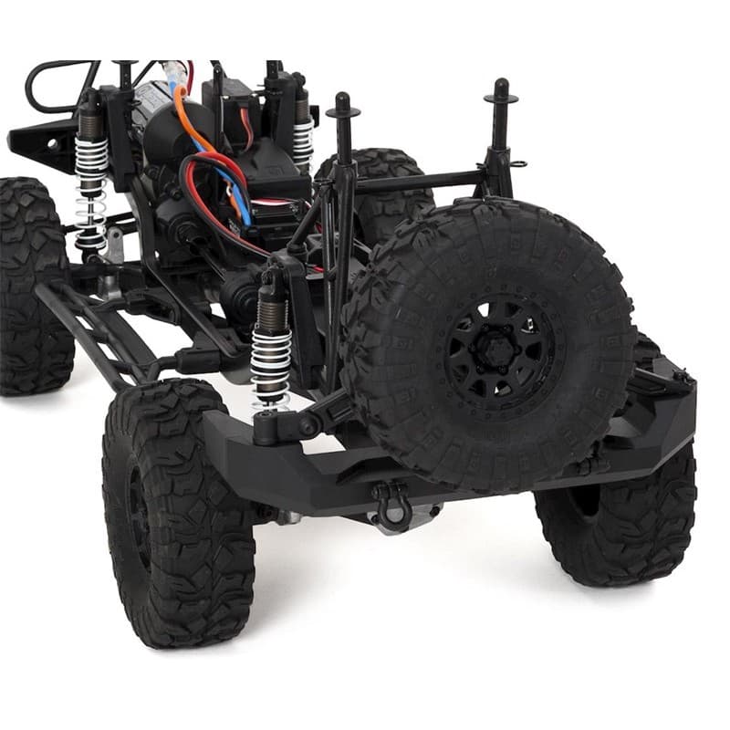 The Venture combines a realistic front-motor position and formed steel chassis rails with a realistic suspension and drivetrain. The Venture chassis is finished with the fabulous look of the celebrated Toyota FJ Cruiser for a fantastic scale off-road experience only HPI can deliver! With a fully licensed replica body that includes front and rear bumpers, mirrors, functional roof rack and swing-away spare tire mount, the Venture brings total scale realism to crawler fans right out of the box. Underneath the body, the steel C-channel chassis rails support a front-mounted motor, transmission and servo, plus a central transfer case that sends power to telescoping driveshafts and solid axles with metal diff covers. Authentically scaled oil-filled shock absorbers and full-time locked differentials work with the realistically treaded tires for confident driving in all off-road situations.