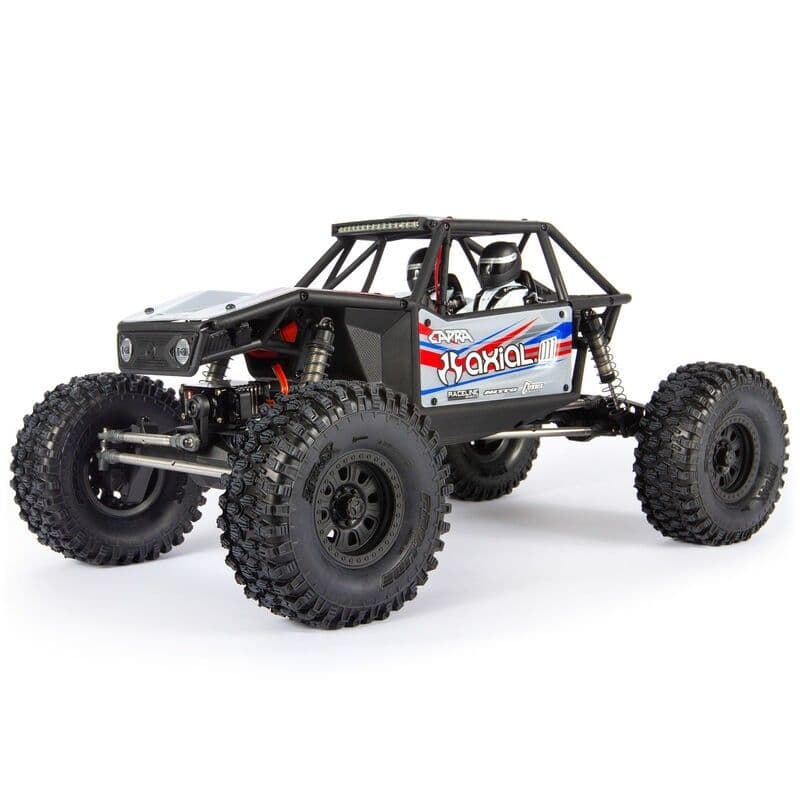 The Axial® Capra™ 1.9 Unlimited Trail Buggy Builder's Kit is a "new from the ground up" design that any advanced RC enthusiast eager for cutting-edge crawling will appreciate. Its Currie F9 Portal Axles provide extra ground clearance at the diff pumpkin for the best crawling performance. With the included Dig transmission, you can also switch on the fly between 4WD and FWD directly from your 3-channel transmitter — locking the rear axle whenever you need the tighter turning radius of front drive power. The Capra features a realistic tube chassis design and metal gears everywhere, from the center transmission to the lockers and portal axles. It rides on licensed Raceline 3-piece molded beadlock wheels that can be fitted with whatever 1.9 tires you prefer. For pioneering performance in an RC trail buggy kit, choose the Axial Capra.