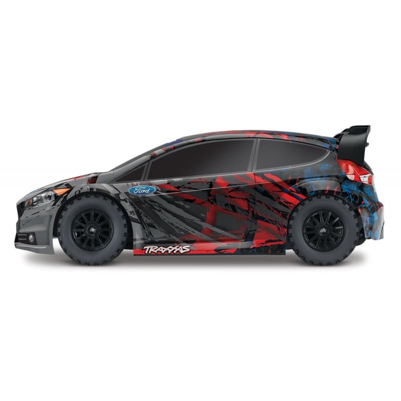 Here we have the Low Center of Gravity Traxxas Rally. Inspired by full-scale rally cars, the Traxxas Ford Fiesta is full of performance. The Traxxas Ford Fiesta ST Rally puts you in the driver’s seat for intense all-surface rally action! The Fiesta ST Rally is specially tuned with a low center of gravity (Low-CG) chassis and oil-filled Ultra ShocksTM to be agile on the track. When the pavement ends, its full-time 4WD, long-travel suspension, and rally-bred tires dig in for ultra-fast bumper-to-bumper racing action. The powerful Titan® 550 motor muscles you to the front of the pack and waterproof electronics allow authentic all-weather racing. The Traxxas Ford Fiesta ST Rally is Ready-To-Race®, and built Traxxas-Tough for versatile, exciting driving fun that could only come from Traxxas.