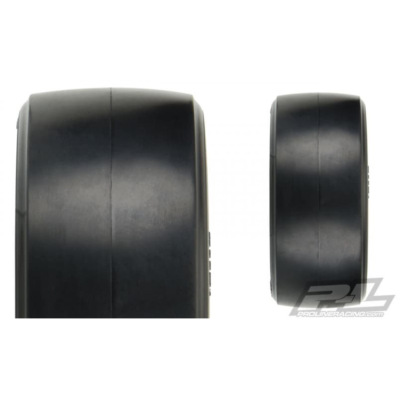 This is a pair of Hoosier Drag Slick SC Rear Tires. Fully licensed by Hoosier, these Pro-Line Hoosier Drag Slick SC tires were specifically made for no-prep Drag racing! Hoosier is well-known for their success in full-scale drag racing. Now you can have your very own set of scale Hoosier Drag Slicks for your no-prep SC drag racing machine! The Hoosier Drag Slick tires not only look amazingly Scale, they perform just like the full-size tires, so you can have realistic style and performance on your SC Drag car. And just like the full-size Hoosier tires, these Drag Slicks proudly display White Hoosier Logos on the sidewall! These tires are available in Pro-Line's Soft, yet very durable S3 compound or the more stable MC clay compound. The Hoosier Drag Slick tire and every other tire that Pro-Line makes is proudly Made in the USA. Get maximum grip so you can be faster than your racing buddies with Pro-Line's all-new Hoosier Drag Slick SC tires!