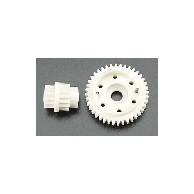 This is a Two-Speed Wide Ratio Gear Set for the Traxxas Revo transmission.These parts are located in the center transmission.