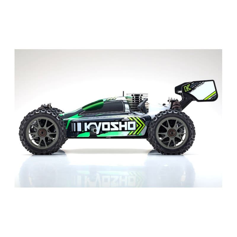 With 8 World Championship titles, the ‘Inferno’ is proud to be KYOSHO’s flagship model. Infused with Inferno DNA, the Inferno NEO 3.0 is ready to race almost as soon as it’s out of the box and brings the Inferno’s glorious performance potential within reach of everyone. While excelling on racing circuits, the NEO 3.0 also runs through rough terrain like a boss with features such as the user-friendly KE21SP engine with recoil pull starter and Big Bore Shocks with the KC Cross Tires that deliver an optimal balance of performance and traction on any surface. Based on the competition-level chassis, the NEO 3.0 promises exceptional reliability and durability plus a wide range of setting adjustments and custom performance upgrades through the huge range of optional parts available for the MP7.5 series. Experiencing the thrill of engine-powered off-road buggy racing has been made easy with the Inferno NEO 3.0!