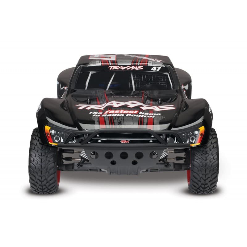 Traxxas Stability Management TSM® allows you to experience all the extreme power, speed, and acceleration that was engineered into your Nitro Slash making it much easier to control on common slippery surfaces such as loose dirt, smooth concrete, and even ice and snow. Punch it off the line and TSM goes to work sensing the vehicle’s direction and making steering corrections to provide straight-ahead full-throttle acceleration without fishtailing, spinouts, and loss of control. TSM also works during cornering, first making intuitive corrections to maintain your line, and then allowing you to hammer the throttle earlier in the turn for much faster exit speeds. Braking is dramatically improved as TSM works to keep you arrow straight until you come to a complete stop.