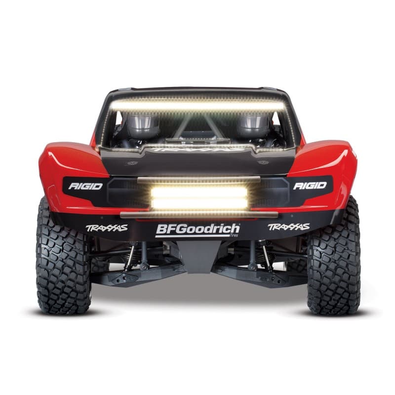 The Unlimited Desert Racer combines Pro Scale® performance with extreme 6s power for the most thrilling RC driving experience possible. Powered by The UDR® drives like a real desert truck because it’s engineered like a real desert truck. A 4-link solid rear axle provides huge suspension travel with authentic driving dynamics. From the cantilever sway bars and high-voltage lighting system to the GTR shocks, Traxxas accurately reproduced a true desert racer in both form and function. Large amounts of travel will soak up all the whoops and terrain you can drive it through . The sealed electronic box will stop the elements from ruining the main components. A whole class on its own, the Unlimited Desert Racer would surely be a great addition to your fleet.