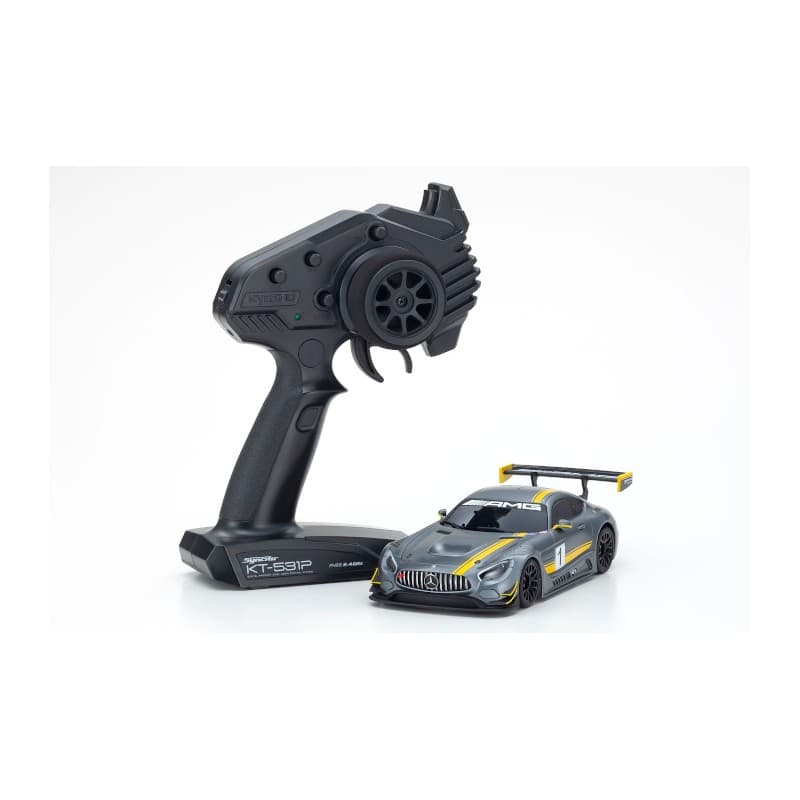 With just 8 x AAA-size batteries, the MINI-Z Racer allows anyone to enjoy the beautiful style and advanced performance of R/C cars. First launched in 2013, Kyosho has renewed the MINI-Z Racer Sports MR-03 concept to be even more user-friendly and appealing to more drivers with the MINI-Z RWD series! Widely popular body styles in highly detailed body sets create the incredibly realistic model lineup. Including the latest Syncro KT-531P transmitter with steering trim, throttle trim, dual rate, LED control function, the sponge grip of the steering wheel provides comfortable fit for precision control feel. The set also includes a car body finished to display-model standard that matches stunning style with the performance, reliability and durability of the MR-03 chassis. The new control program on the circuit board provides linear handling characteristics and can be further enhanced for even easier control by installing the optional gyro unit (MZW431). This series represents the perfect package for a deep dive into the amazing world of R/C cars!