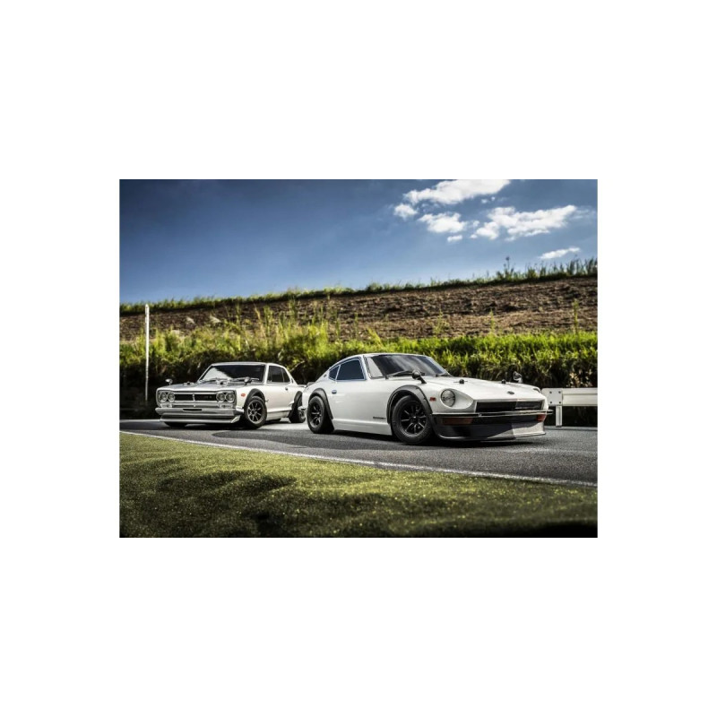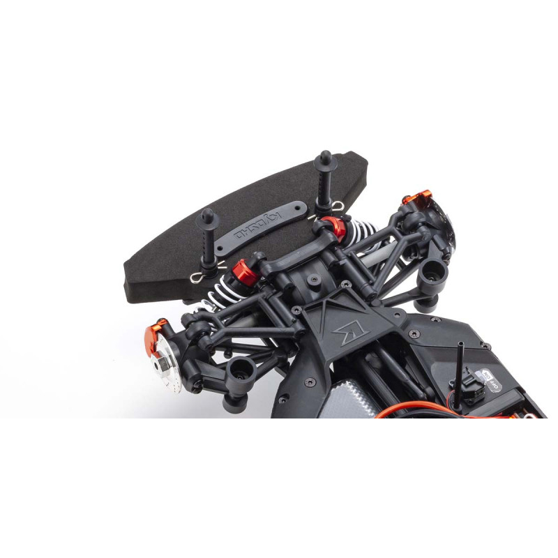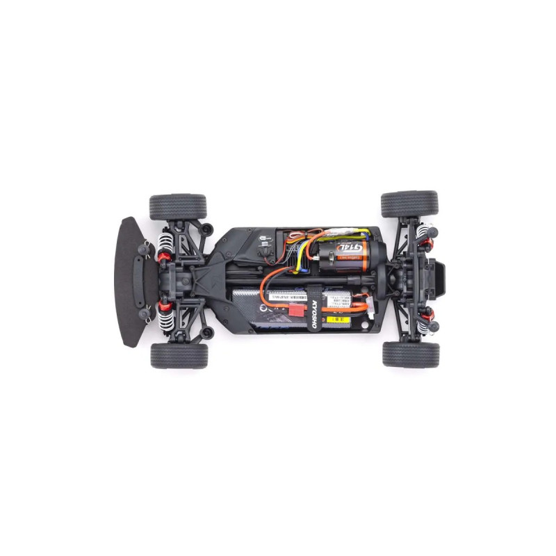 For the pure enjoyment of R/C car driving, the combination of a beautifully reproduced car body with the FAZER series chassis can’t be beaten. Kyosho has taken its standard touring car chassis and given it a full model makeover that has evolved performance to a new level. A simplified design with fewer parts has improved maintenance efficiency and reduced weight while core strength and rigidity has been increased through new materials and ribbing and stiffeners on front and rear. In addition, the symmetrical chassis design synergizes excellent front-rear balance through the suspension with responsive control, irrespective of power source. Featuring slipper clutch, front & rear gear differentials, oil shocks and full ball bearing specs, the high durability and impact resistance allows drivers to unleash the full potential of the chassis. Brake disc wheel hubs with two different offsets (0mm, +5mm) provide compatibility with 190mm and 200mm width body styles and allows the wheelbase to be adjusted to 270mm by replacing some parts (sold separately) for compatibility with other 1/10 scale body styles, in addition the body included. The Readyset package comes fully assembled and includes everything except charger and battery for the chassis, and batteries for the transmitter.