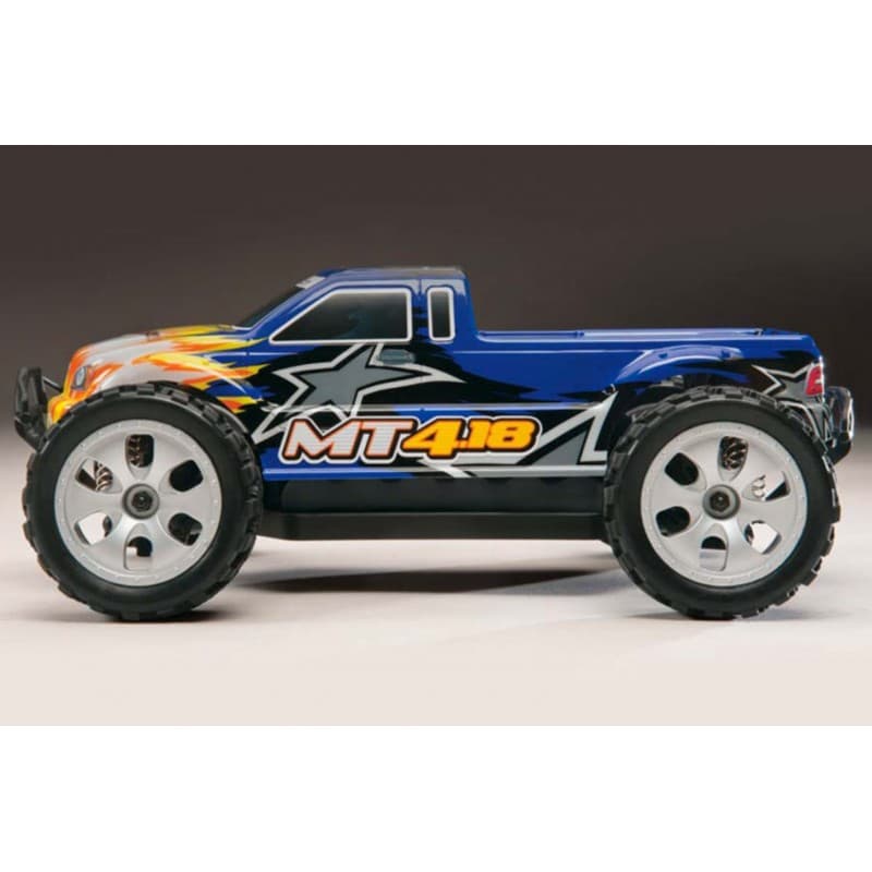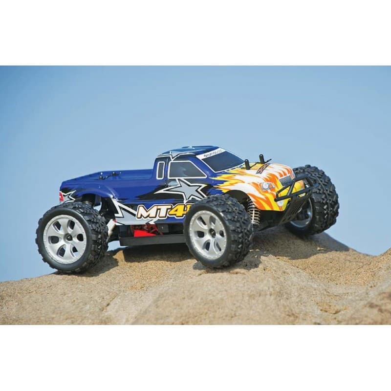 Tough as the turf it rolls over, the MT4.18 is designed to take all the abuse that you can dish out. It has tough composite parts for durability. A countersunk chassis and front skid plate for sliding over obstacles without hang-ups, plus extra-wide bumpers and Big Bore oil shocks for softening bumps and post-jump touchdowns. Full-time 4WD and high-traction tires specifically designed for off-road bashing.