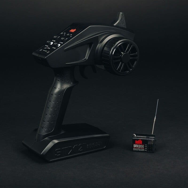 The ready-to-run KRATON™ 6S BLX 4WD Speed Monster Truck includes the new Spektrum™ 2.4GHz STX2® transmitter and comes with its SRX200 receiver and ADS-15M metal-geared servo already factory-installed. The only required items are a 4S or 6S LiPo battery, compatible charger, safe charging bag, and 4 x AA transmitter batteries. ARRMA® recommends the Dynamite® Powerstage™ Stage 6 bundle (DYN1540), which includes a Passport™ Ultra P2 100W AC/DC Multi-Charger and two Reaction HD 5000mAh 3S hardcase LiPo batteries with EC5™ connectors.