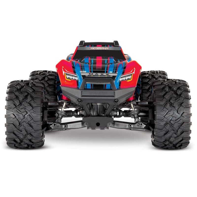 This is the new 1/10th scale monster truck, the Traxxas Maxx. Modeled after its bigger brother, the Traxxas XMaxx, almost everything is identically scaled down into a 1/10th scale package. The modular tube chassis design incorporates the shock towers into the chassis, giving the Maxx extreme durability. Already fitted with big bore threaded aluminum shocks, the Maxx can handle the roughest terrain. That, added with the power coming from the VXL4s electronic speed controller and Velineon 540XL, makes the Maxx capable of handling anything you can throw at it!