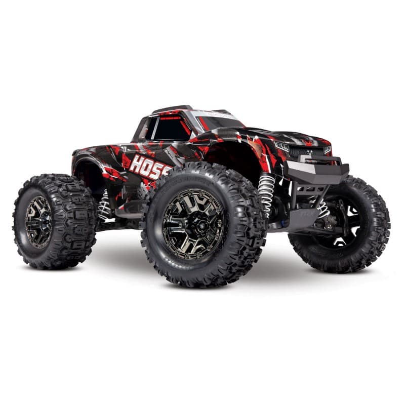 The all-new Hoss 4X4 VXL encompasses everything about Traxxas. Extreme power, unstoppable wheelies, 60+MPH speeds. Nothing can stop the Hoss. The Torque Biasing Center Drive and heavy-duty shaft-driven 4WD system transfers maximum power to all 4 tires. Traxxas TQi radio system equiped with Traxxas Stability Management system will help you keep the Hoss pointing straight where you want it to go. The new 540XL motor delivers unmatched toqrue to turn the large 5.3" sledgehammer tires. The high ground clearance means you'll be rolling over majority of the terrain you put it through. The things you cant roll over? Just pull the throttle and POWER THROUGH!