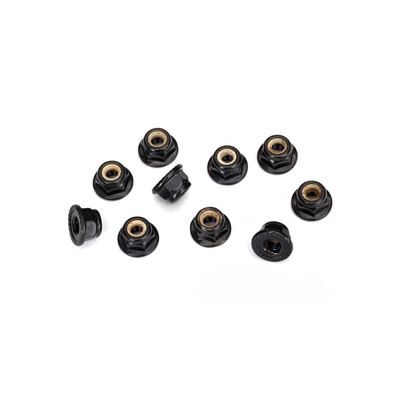 Traxxas Nuts, 4mm flanged nylon locking, serrated (black) (10)