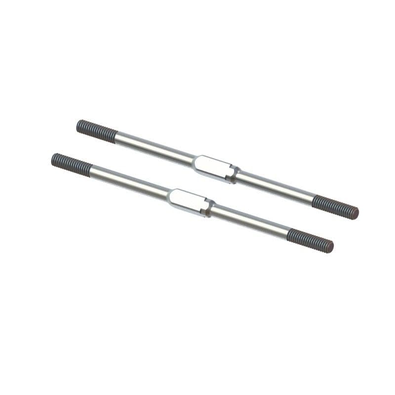 Machined from a high-grade heavy-duty steel - Durable silver surface finish adds cool ARRMA looks to your vehicle - M4 threads at each end, one with a left-hand thread and the other with a right-hand thread, allow for suspension geometry adjustment without removal from the vehicle - 5mm square section in the center of the turnbuckle for adjustment wrench fit
