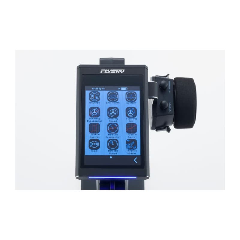Flysky's "Noble NB4" is a 2.4GHz high-end transmitter that is perfect for stepping up from the middle range model and the transmitter for beginners that comes with the Readyset. In addition to the high performance required of high-end R/C systems, the Noble NB4's main feature is a feature that is full of originality. One of them is the adoption of a full-color touch panel display that controls all functions and settings. A wide variety of menus including endpoint adjust, exponential, ABS, and model memory (for 20 cars) can be operated like a smartphone. In addition, since the various setting screens have a graphical design, anyone can change the settings intuitively and easily. Another innovative idea is the wheel mount that rotates 180°, which can be changed to left-handed specifications without changing any parts. In addition, a detachable external battery that can also be used as a mobile battery, dual power supplies with external battery and a built-in battery, two Mini-Z EVO chassis receivers are included, and features and equipment all in one. In addition to the performance advantage, the Noble NB4 is made up of hardware that makes it fun to use the transmitter itself.