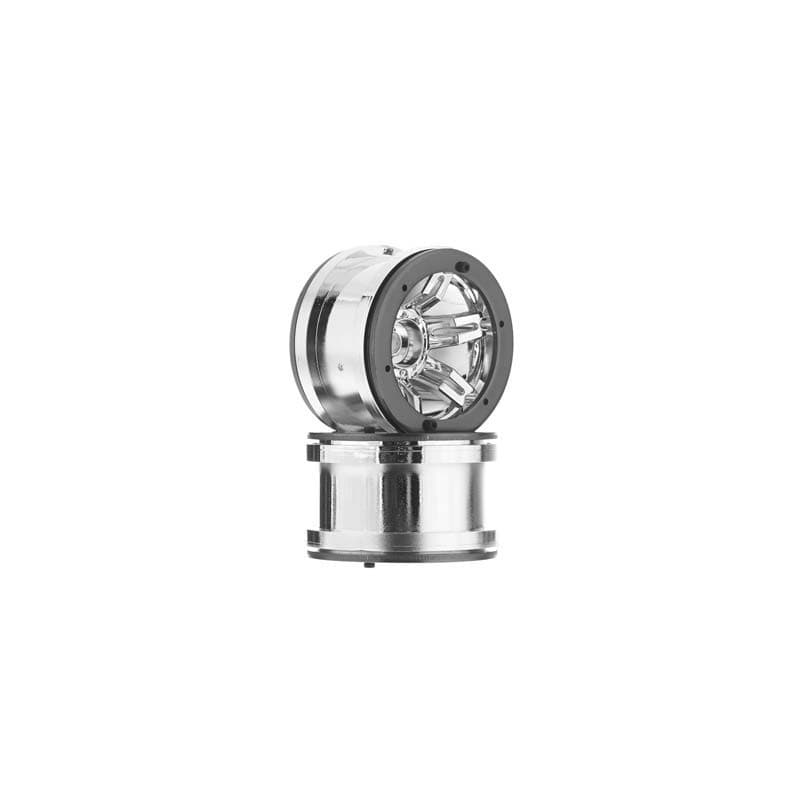 This is the Axial 2.2 Rocksters Rock Crawler Beadlock Wheels in Chrome.