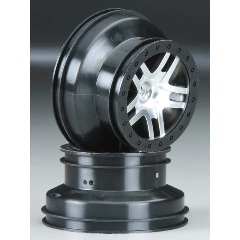 This is a pair of SCT Split Spoke Front Wheels in Black from Traxxas.
