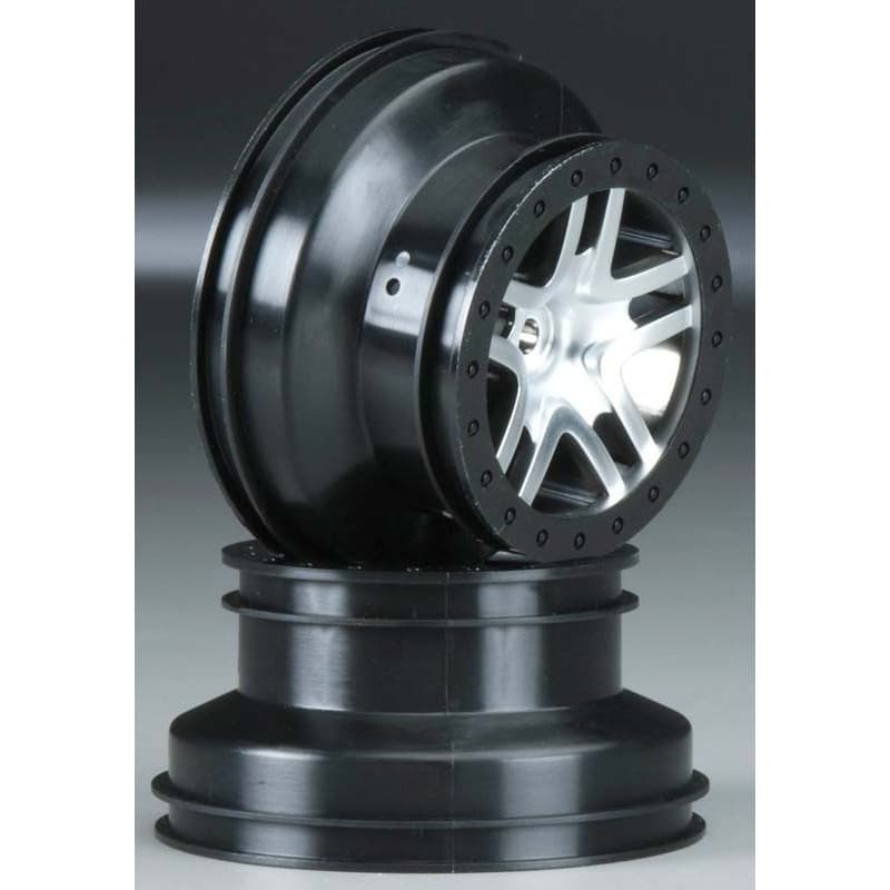 This is a pair of SCT Split Spoke Wheels in Black from Traxxas.