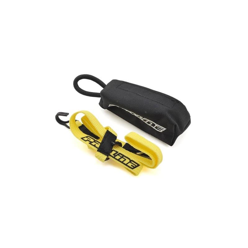 This is a the Pro-Line Scale Recovery Tow Strap and Bag. Developed and tested by the most hardcore scale guys, Pro-Line’s Tow Strap has the Scale looks, features, and performance that every Scale Rig needs to get out of tough spots. The Tow Strap features a metal D-Ring for quick attachments to larger tie-off points and the Kinetic strap material allows for “softer” and more effective tows. Each end has scale metal hooks and abrasion wraps have been sewn around the hooks and D-Ring for longer lasting performance. The Scale Recovery Tow Strap has been finished off with an imprinted Pro-Line logo and can be stored in the included Scale Duffel Bag on your key chain or attached to your rig as another Scale Accessory. Get your very own official Scale Recovery Tow Strap with Duffel Bag now!