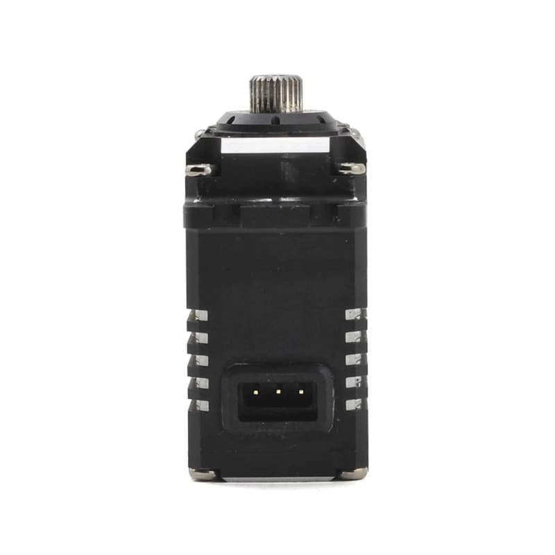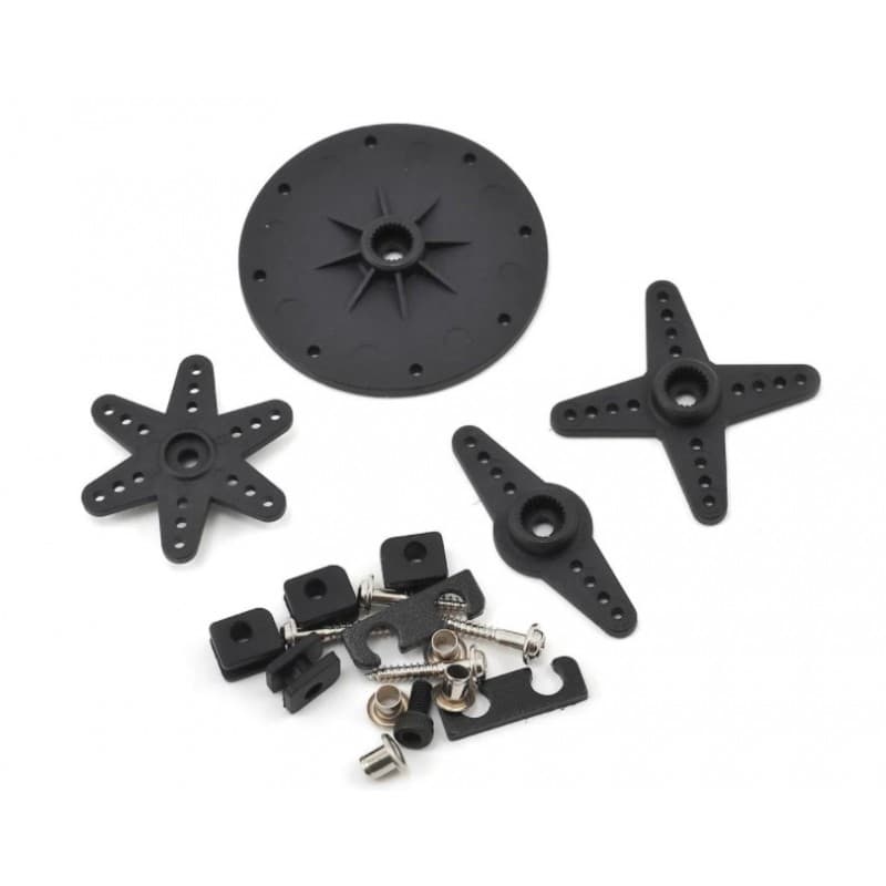 A black anodized aluminum case with aluminum and white accents give this servo a stealthy look that sets it apart from the rest. The aluminum upper case provides bomb proof durability and the heat sink center case offers efficient heat dissipation and helps to reduce weight. The lead wire is detachable, allowing you to easily custom tailor the servo lead to your application, and the package includes both 135mm and 285mm length servo leads. Plus, a full selection of servo arms and mounting hardware are included making installation easy.